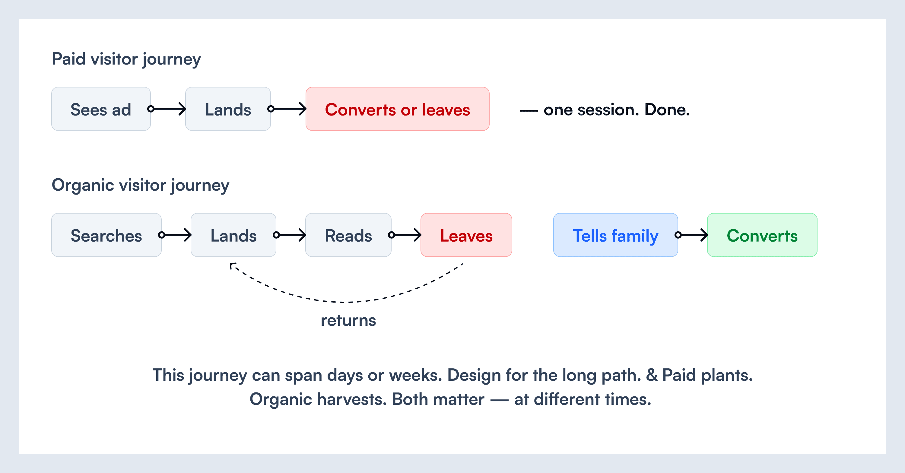 But here's the design implication that most people miss: paid visitors and organic visitors are completely different users with completely different mindsets.